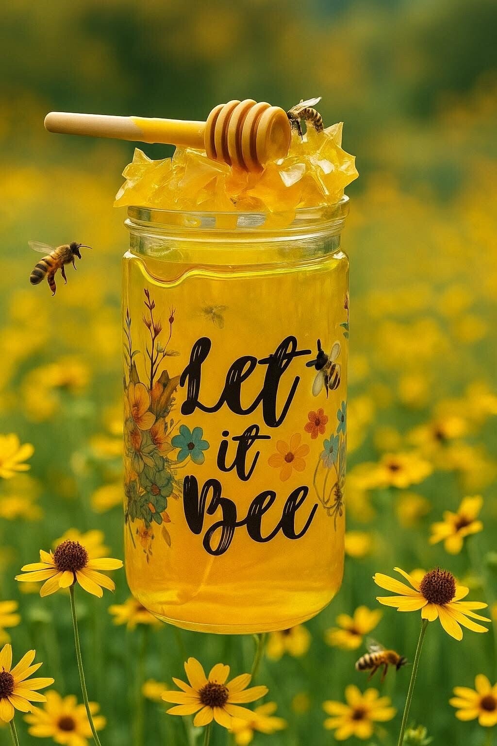 Bring a touch of sunshine and sweetness to your space with this charming “Let It Bee” honey jar. Featuring warm golden hues, delicate floral accents, and playful bee details, this piece captures the beauty of nature and the simple joy of slowing down. Watch the honey drip from the inside of the cup.